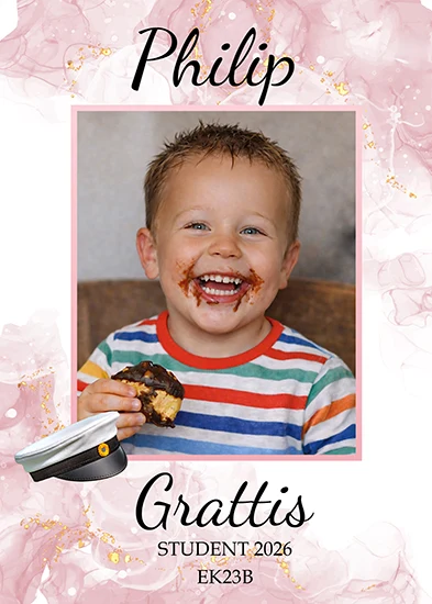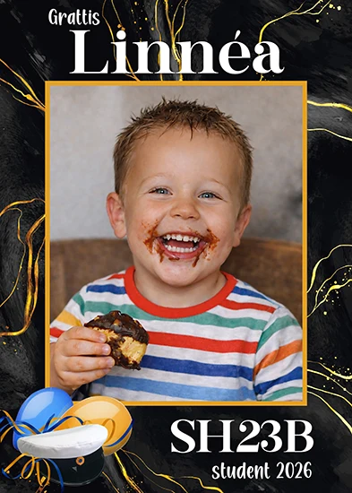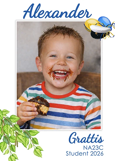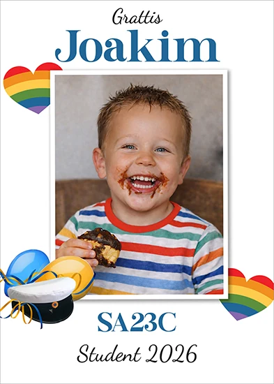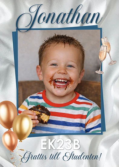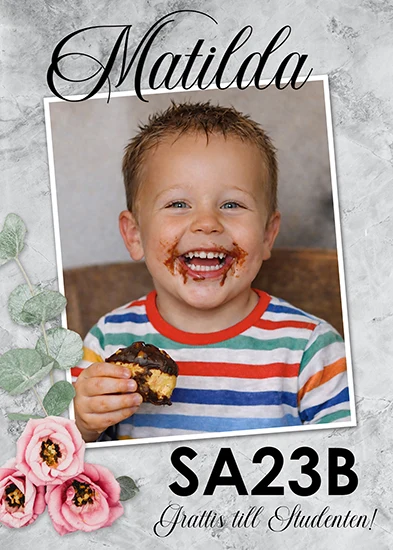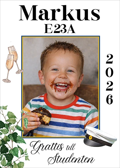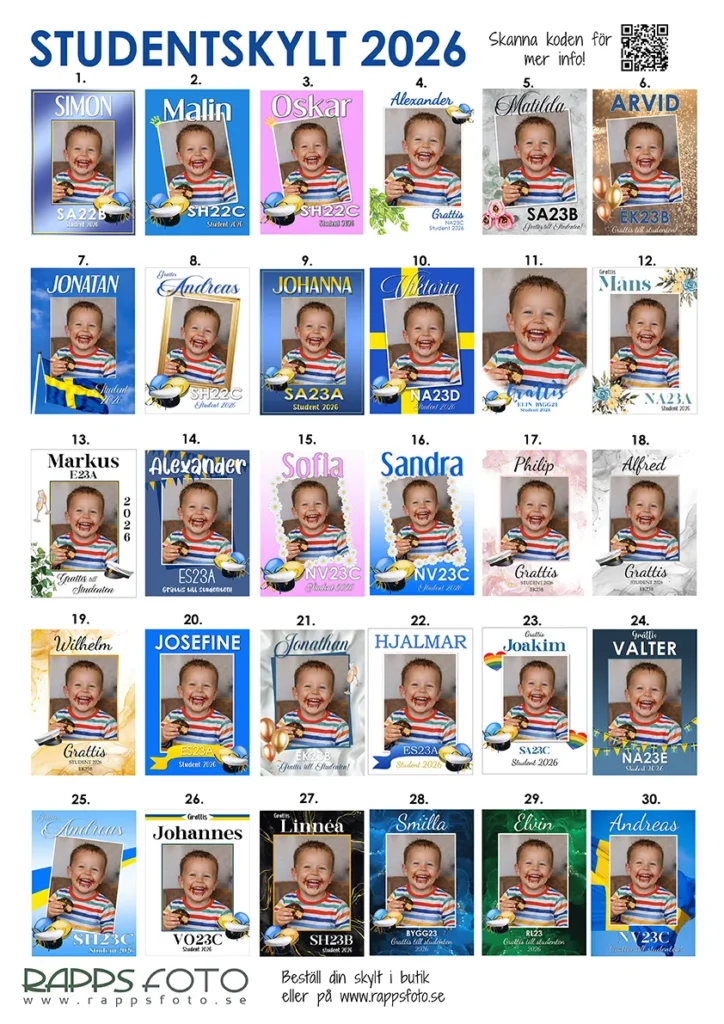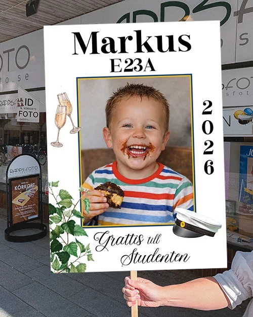 Vid köp av sudentskylt hos Rapps Foto så ingår text och layout av skylt, utskrift och montering av skylten. Du får även med en riktigt stadig träpinne som du enkelt monterar fast på skylten. Har du ett papperskort i tex album eller ram så ingår skanning av bild (för original upp till a4 storlek).
